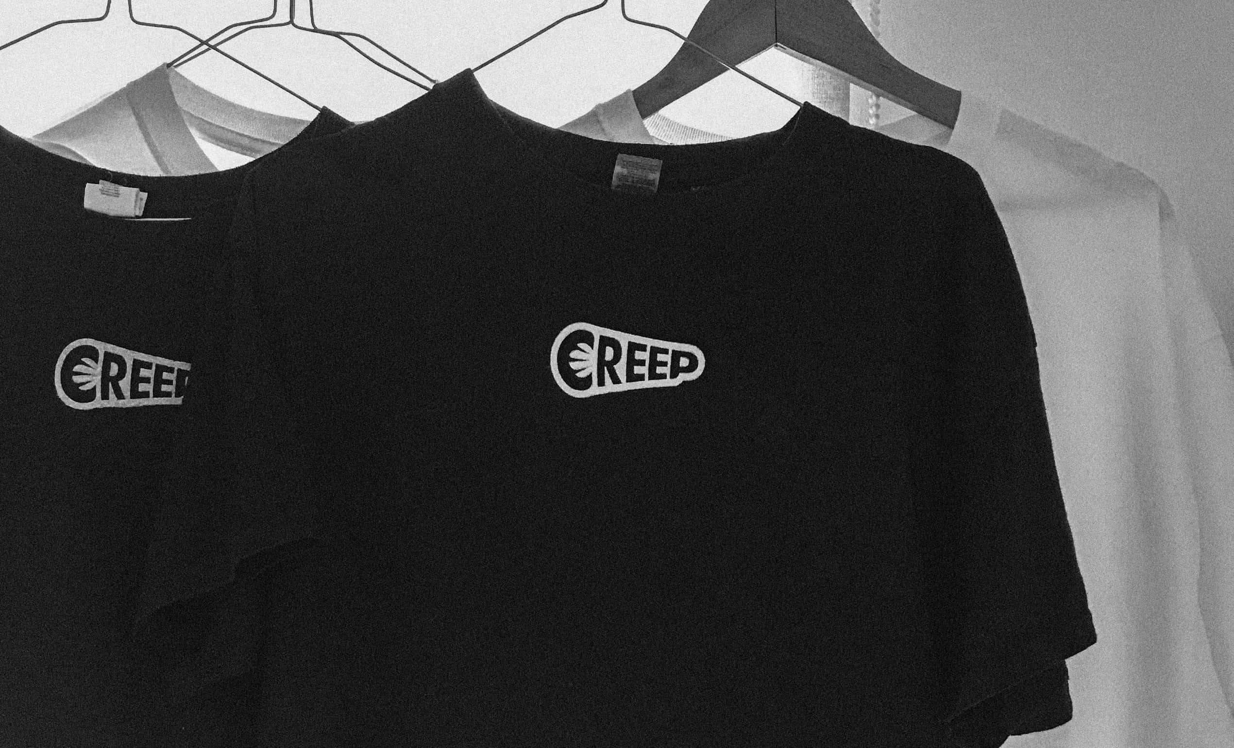 As production moved from embroidered patches to screen printing, the Creep identity evolved. The original word-mark contained eye holes suggesting a creature trapped inside the form. During this stage I removed these details, allowing the logo to feel more elusive and less literal while strengthening its visual presence.